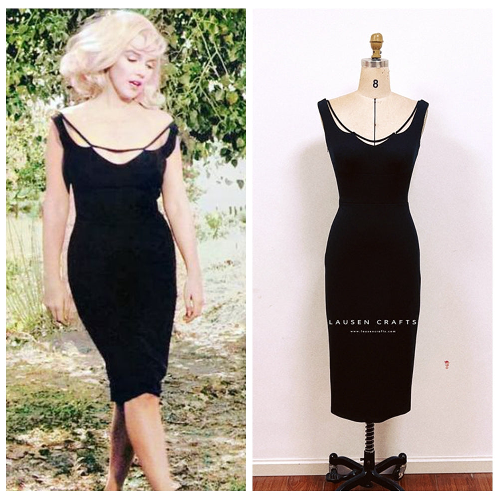 This 1960s short black dress is inspired by Marilyn Monroe Black Dress from movie The Misfits (1961). Marilyn Monroe played as Roslyn Taber, and "The Misfits" would be Marilyn Monroe's final film. The short black dress featured form fitted silhouette, sleeveless neckline with open back design. LausenCrafts custom made Marilyn Monroe inspired outfits and dresses at affordable price.